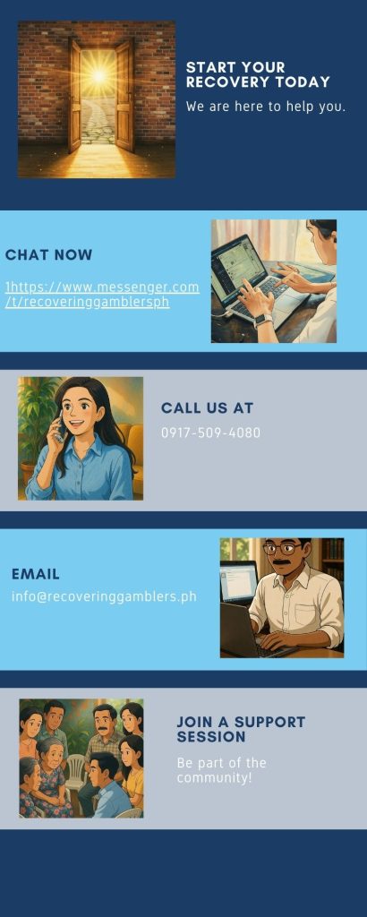 Ang Recovering Gamblers Philippines ay isang safe space para sa mga taong dumaranas ng adiksyon sa paglalaro ng iba’t ibang sugal. Isa itong non-judgmental organization kung saan layon nilang wakasan ang pinagdaraanang bisyo ng isang Read more